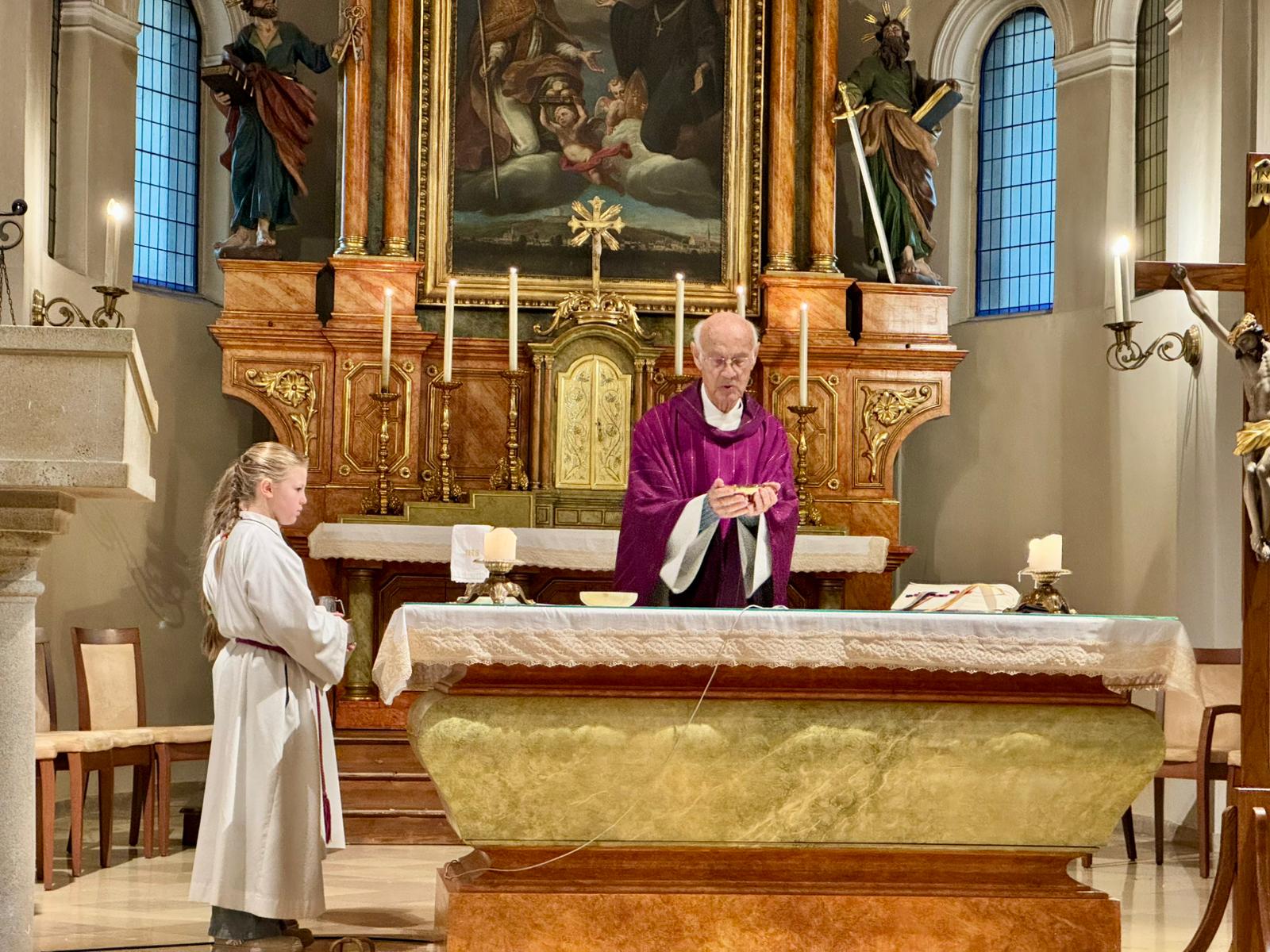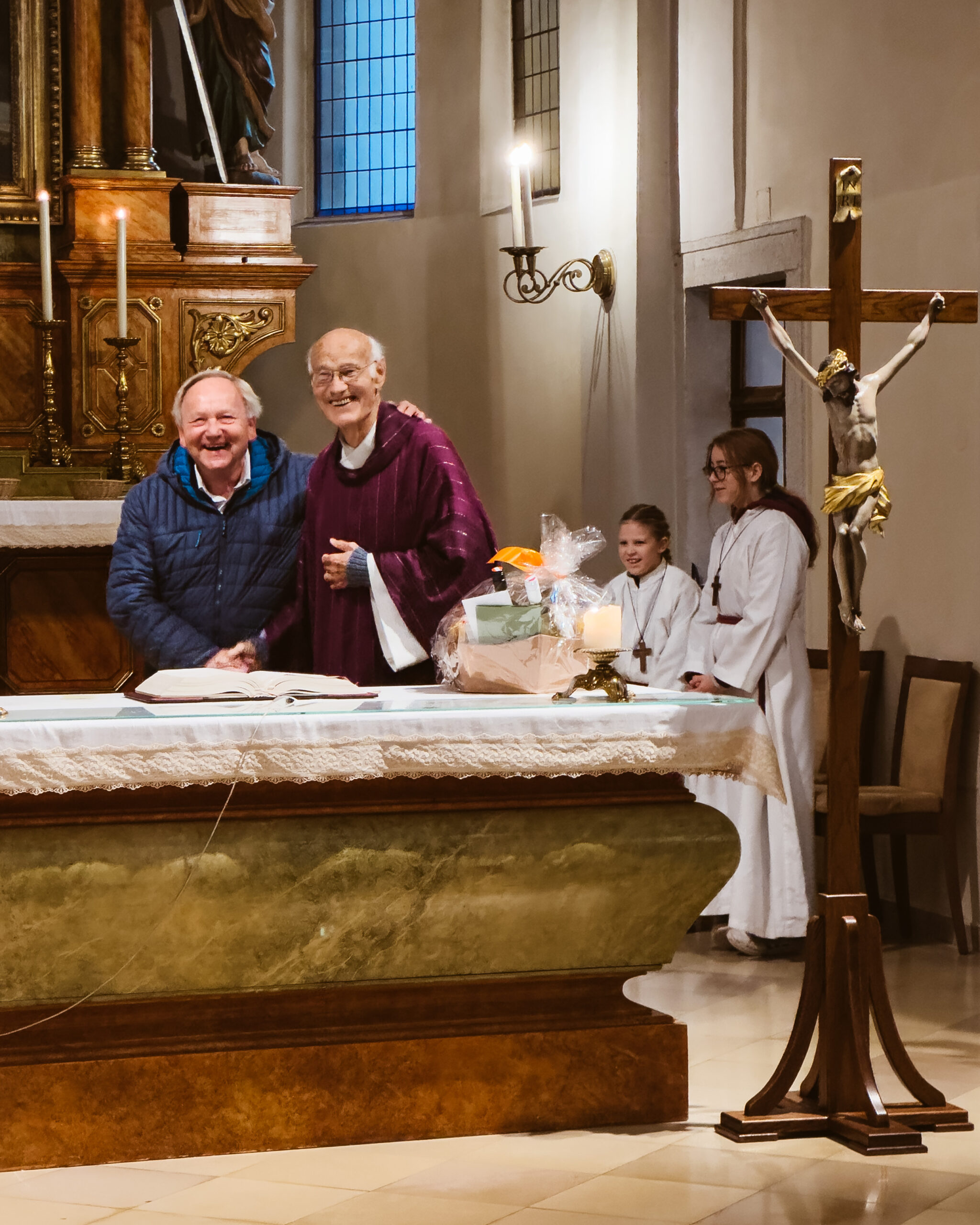 Trotz seines hohen Alters ist Monsignore Dr. Franz Hillinger nach wie vor beeindruckend aktiv – geistig wie körperlich – und eine unverzichtbare Stütze für unsere Pfarre.
