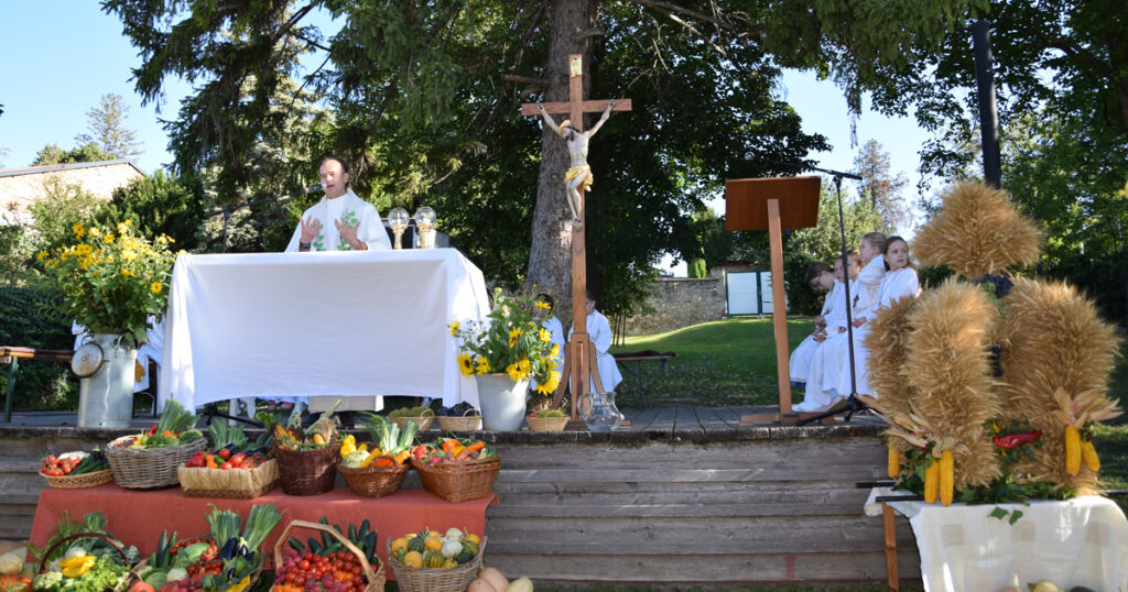 Die Neusiedlerinnen und Neusiedler feierten ihr traditionelles Erntednakfest im Pfarrgarten.