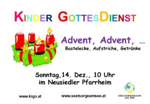 Am 18. Dezember findet im Neusiedler Pfarrheim wieder der Kleinkindergottesdienst statt. Alle Kinder sind mit ihren Eltern herzlich dazu eingeladen.