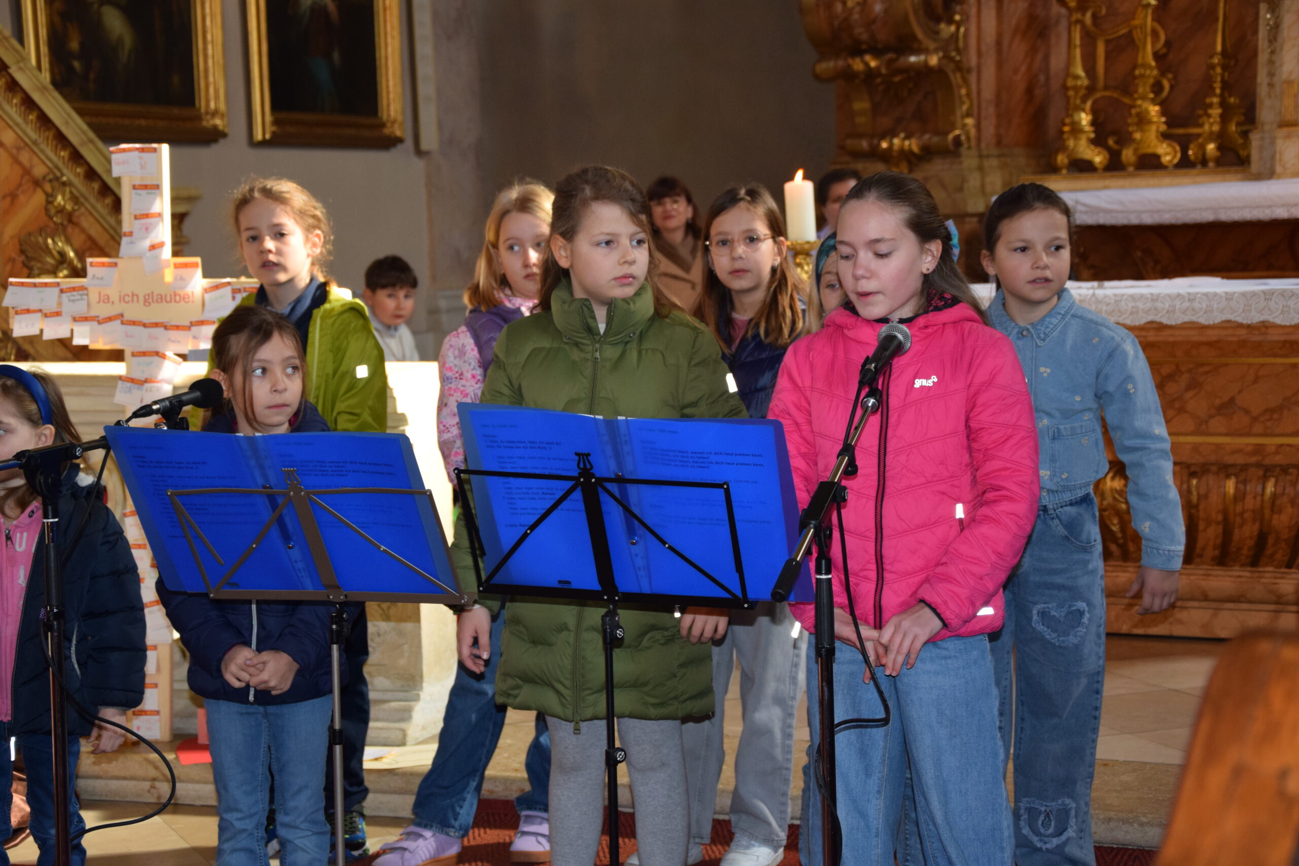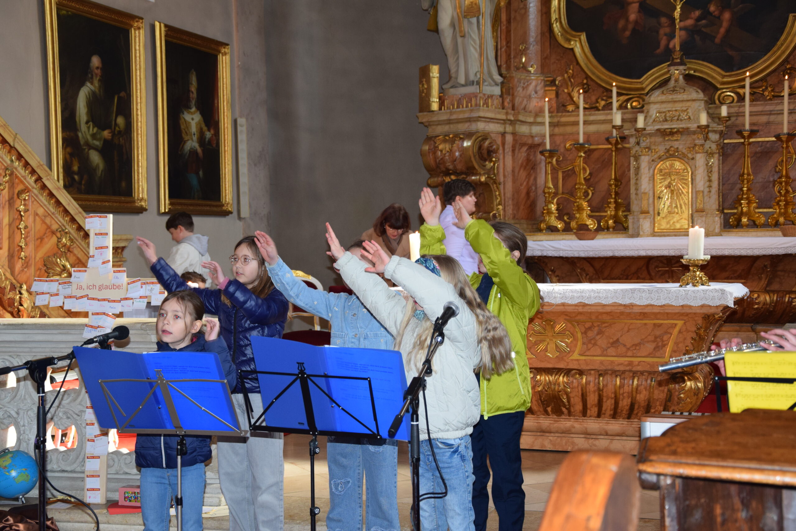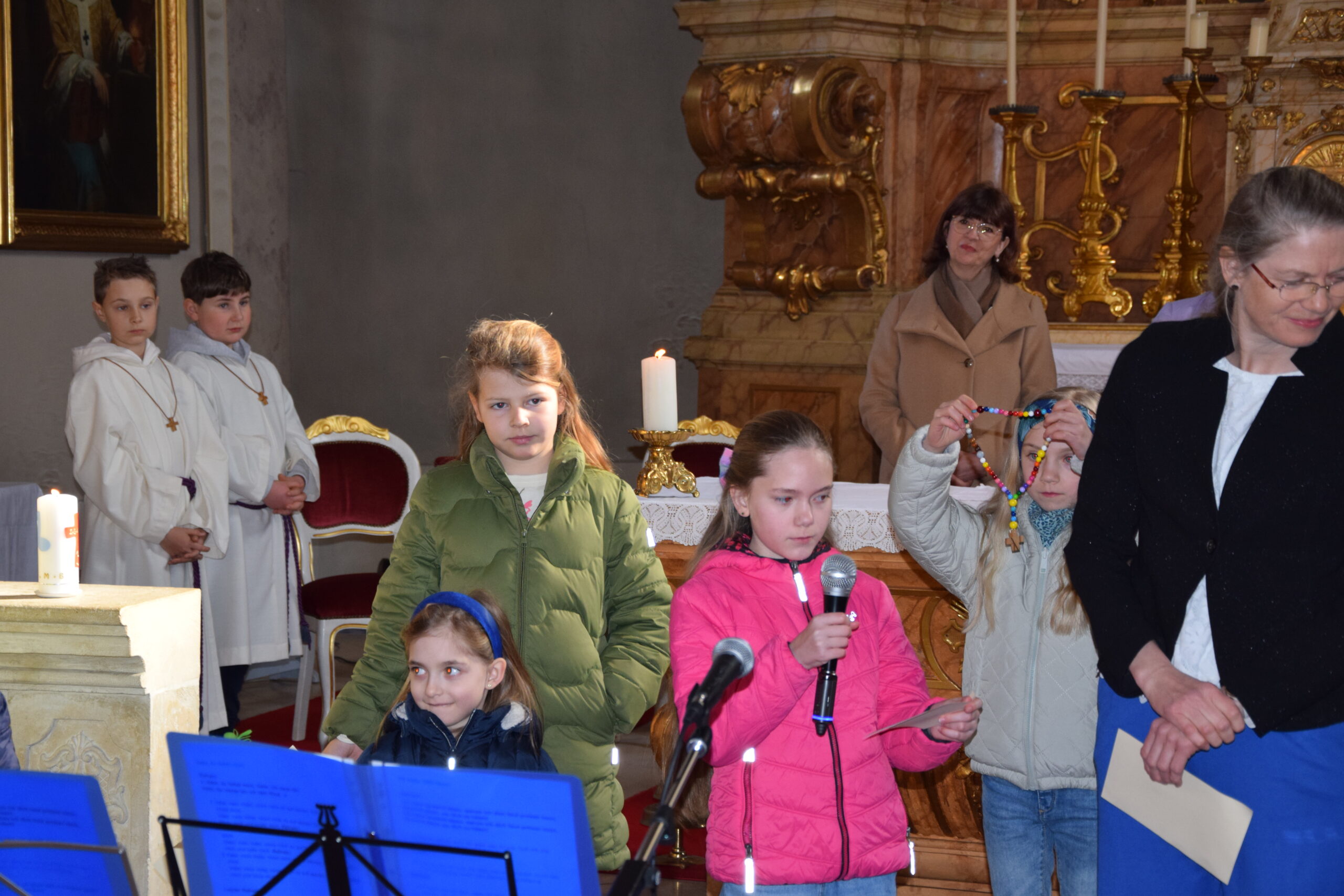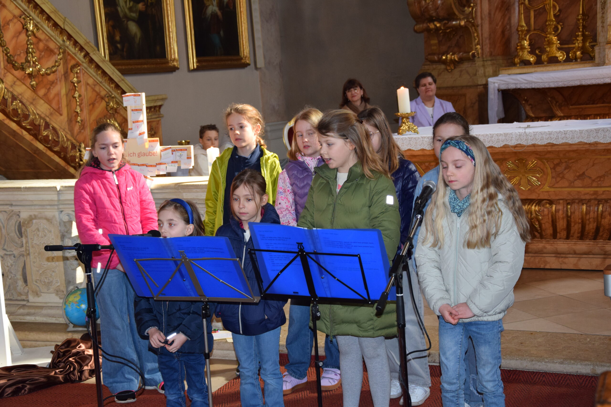 Bei dieser Feier stand nicht nur das gesprochene Wort Gottes im Mittelpunkt; durch die musikalische Gestaltung der Kinder- und Jugendgruppe Sing4ever unter der Leitung von Laura Tschida wurde auch das gesungene Wort mit wunderbaren Stimmen und Klängen bereichert. Die Kinder und Jugendlichen von der Gruppe Sing4ever versprühten sichtliche Freude, von der sich die Gottesdienstbesucher anstecken ließen und machten so dem Sonntag Laetare (Freude) alle Ehre.