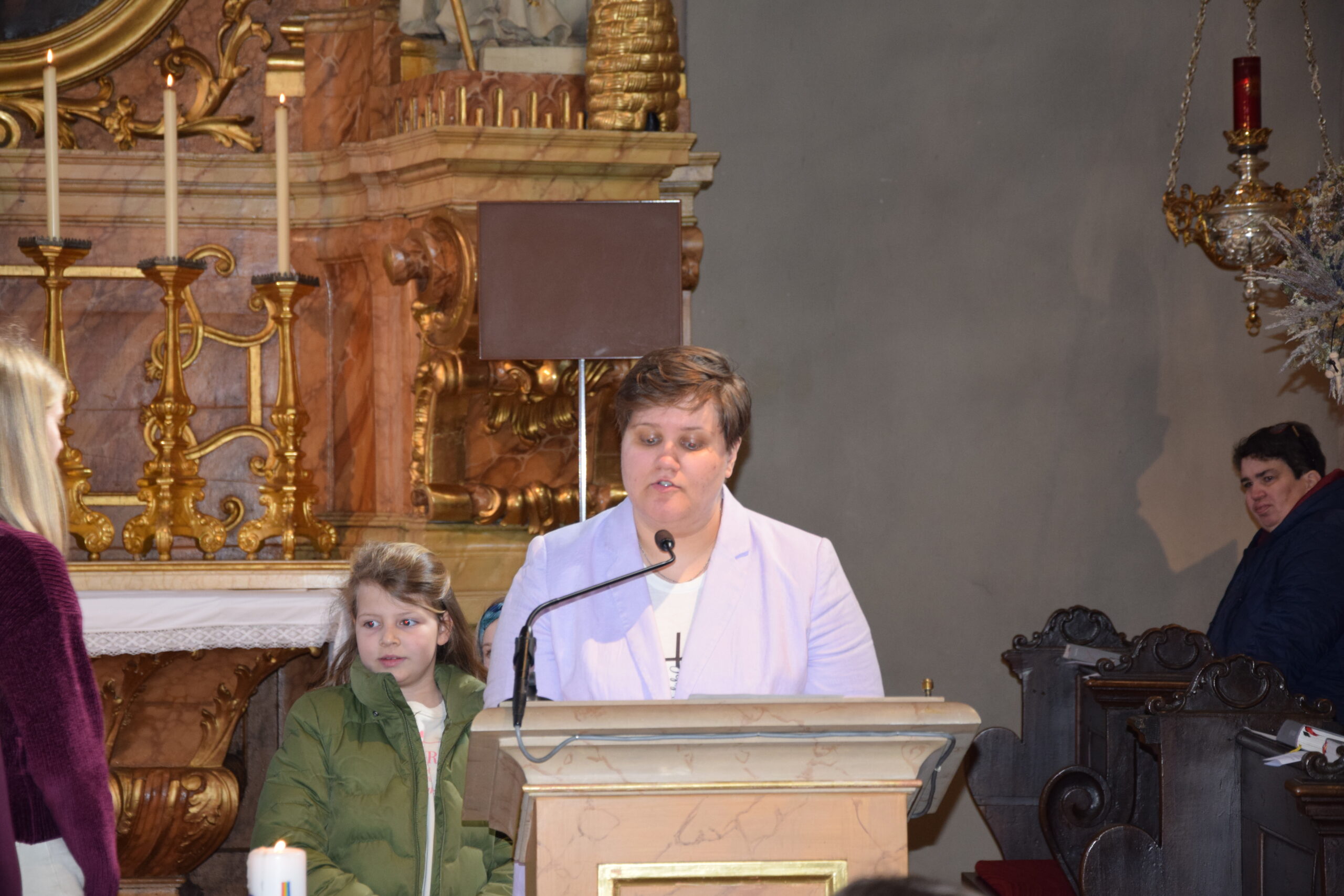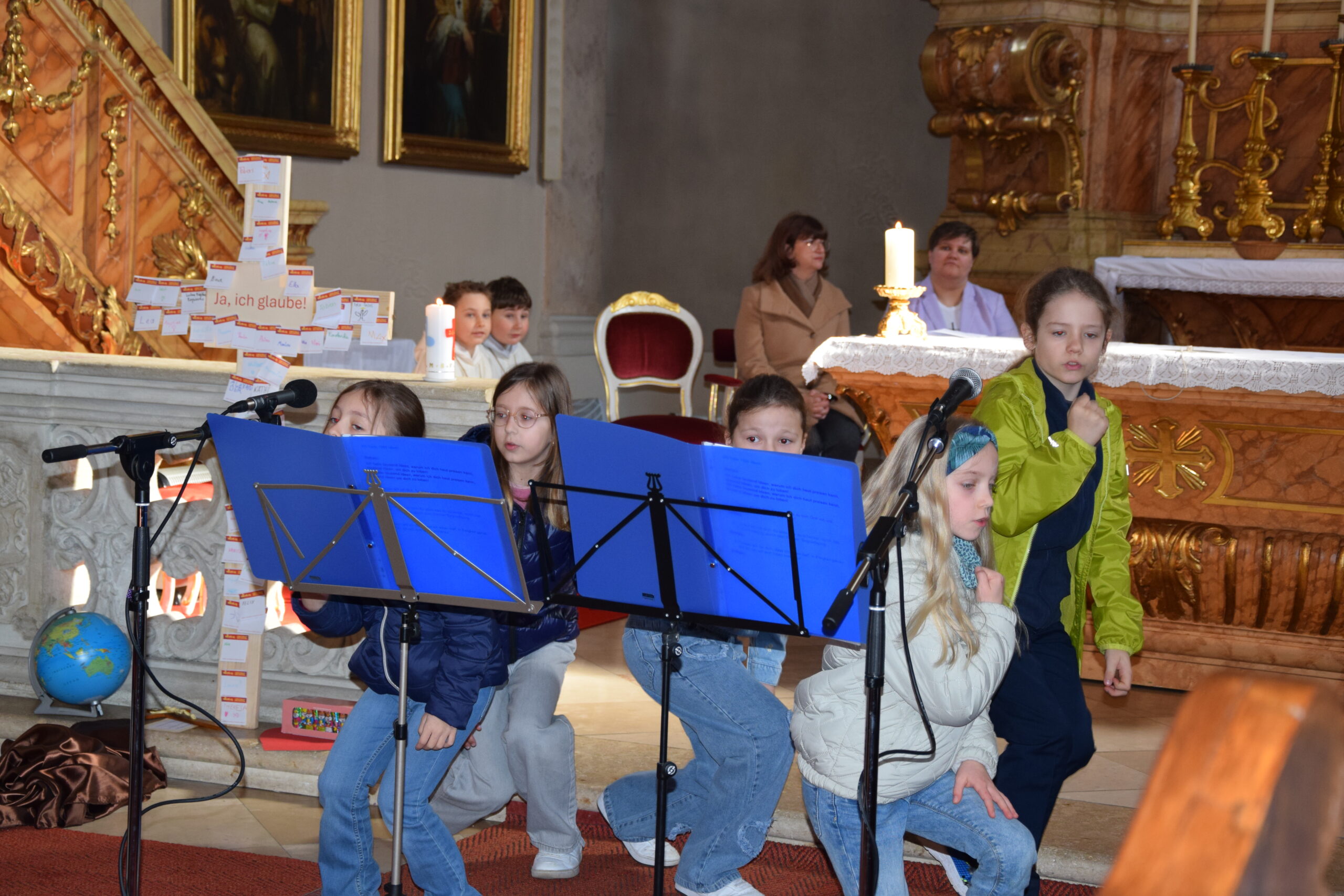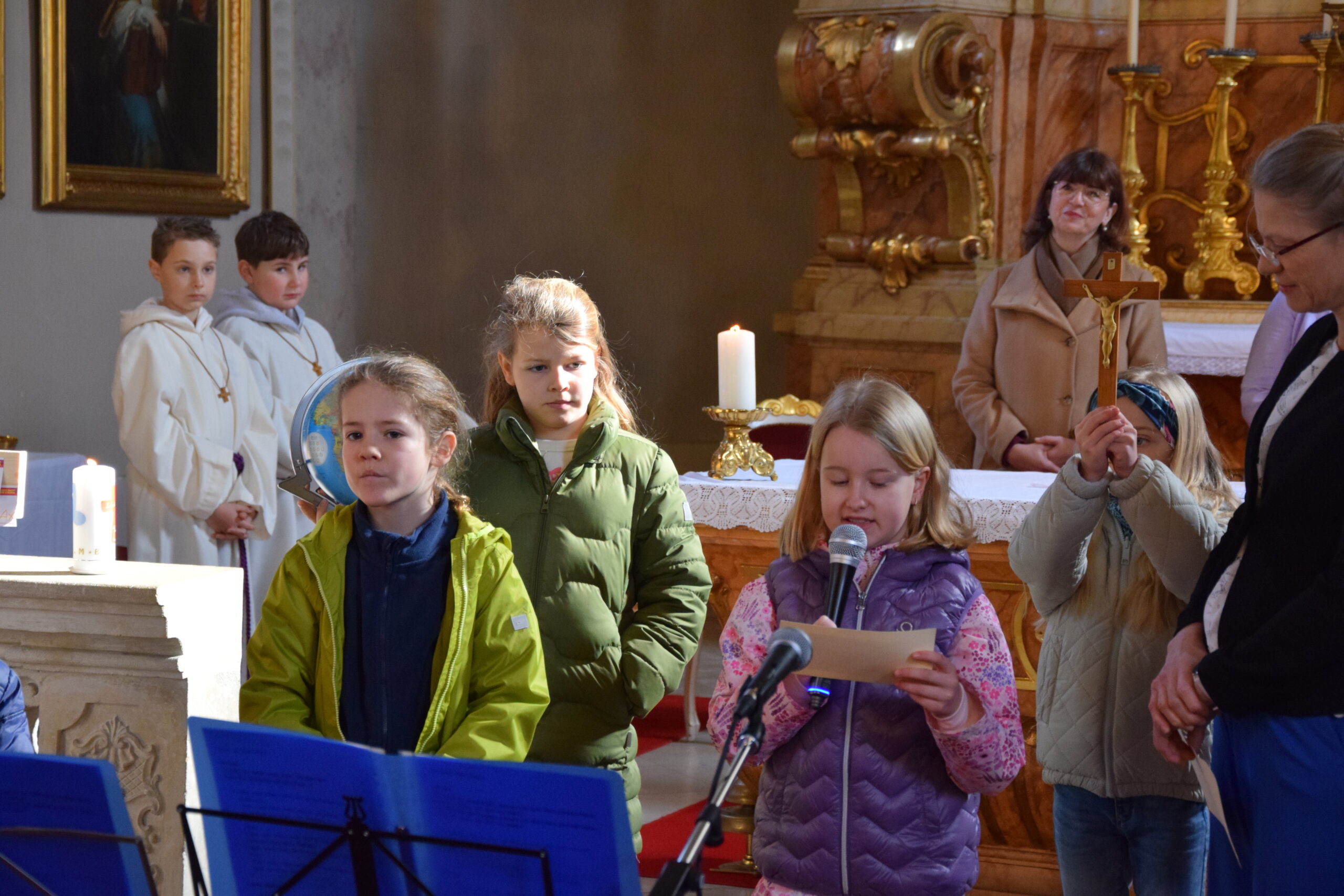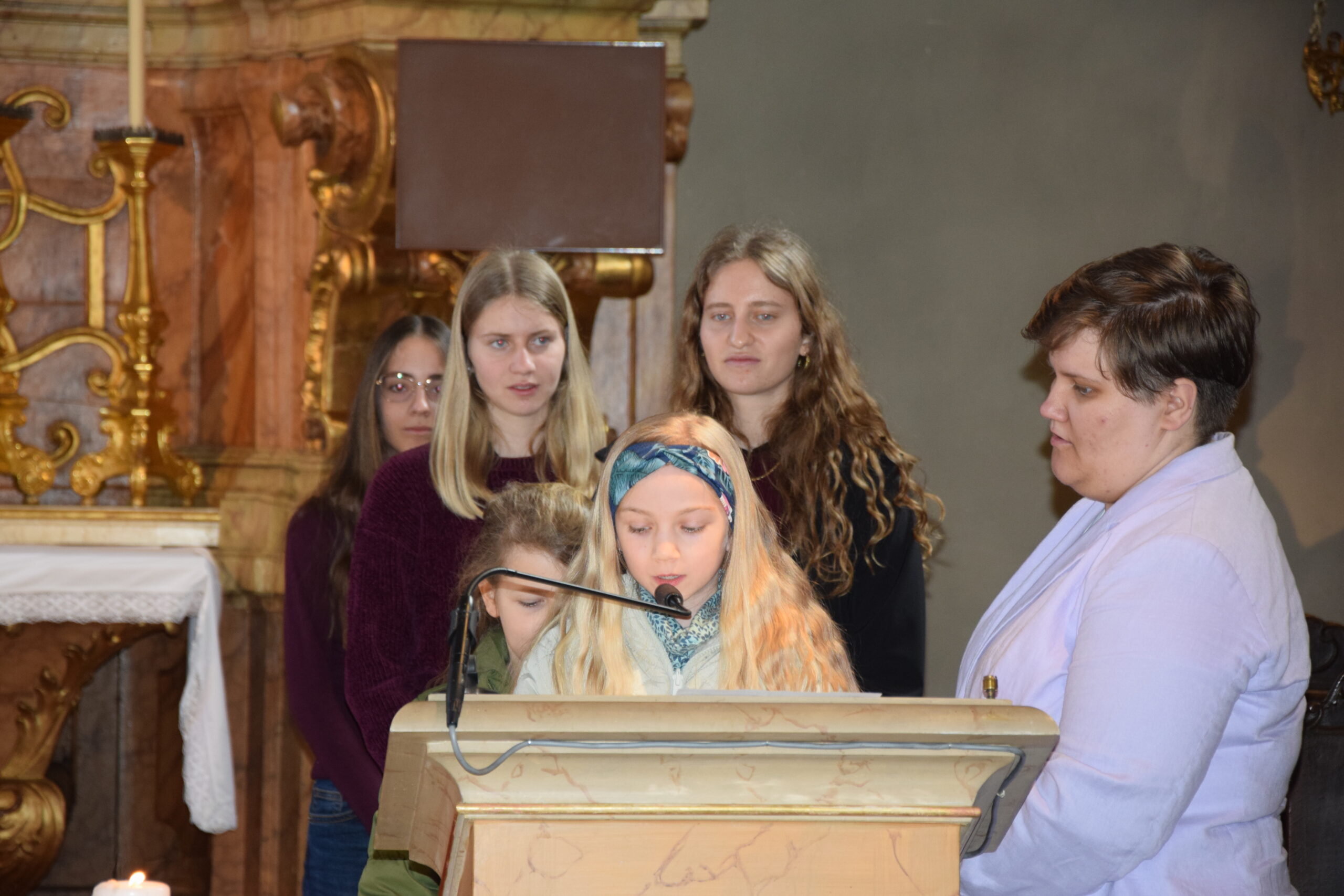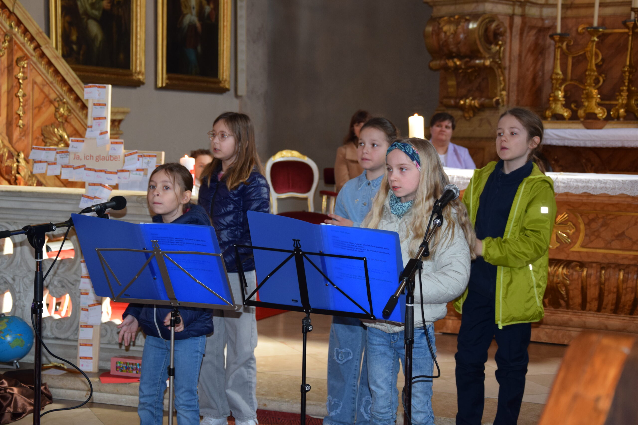 Bei dieser Feier stand nicht nur das gesprochene Wort Gottes im Mittelpunkt; durch die musikalische Gestaltung der Kinder- und Jugendgruppe Sing4ever unter der Leitung von Laura Tschida wurde auch das gesungene Wort mit wunderbaren Stimmen und Klängen bereichert. Die Kinder und Jugendlichen von der Gruppe Sing4ever versprühten sichtliche Freude, von der sich die Gottesdienstbesucher anstecken ließen und machten so dem Sonntag Laetare (Freude) alle Ehre.